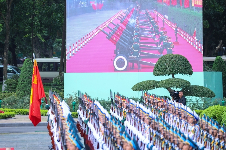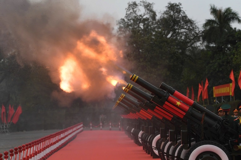 21 phát đại bác chào mừng được bắn từ Hoàng thành Thăng Long trong Lễ đón - Ảnh VGP/Nhật Bắc
