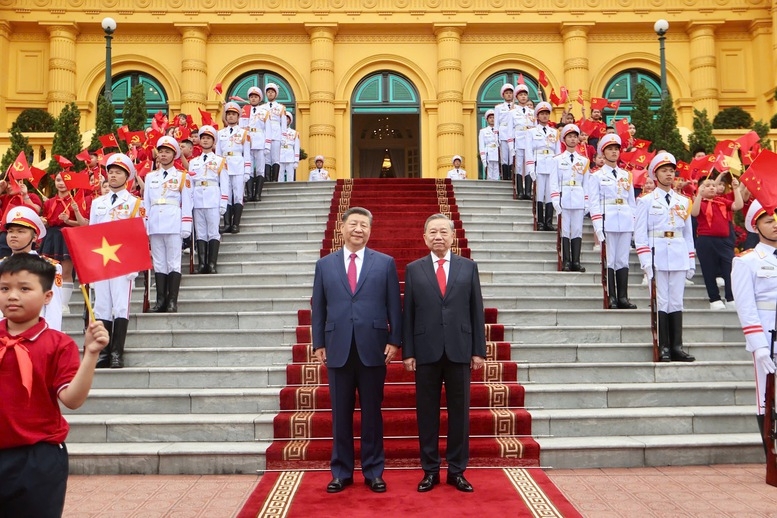 Đoàn xe chở Tổng Bí thư, Chủ tịch nước Trung Quốc Tập Cận Bình tiến vào Phủ Chủ tịch. Tổng Bí thư Tô Lâm nồng nhiệt chào đón Tổng Bí thư, Chủ tịch nước Trung Quốc Tập Cận Bình dẫn đầu Đoàn cấp cao Đảng và Nhà nước Trung Quốc thăm cấp Nhà nước tới Việt Nam.