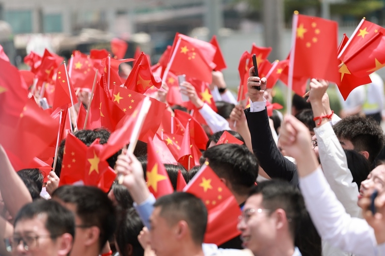 Đông đảo các cháu thiếu nhi và quần chúng nhân dân Thủ đô tay cầm cờ hoa nồng nhiệt chào đón Tổng Bí thư, Chủ tịch nước Trung Quốc Tập Cận Bình cùng Đoàn đại biểu cấp cao Đảng, Nhà nước Trung Quốc - Ảnh VGP/Nhật Bắc