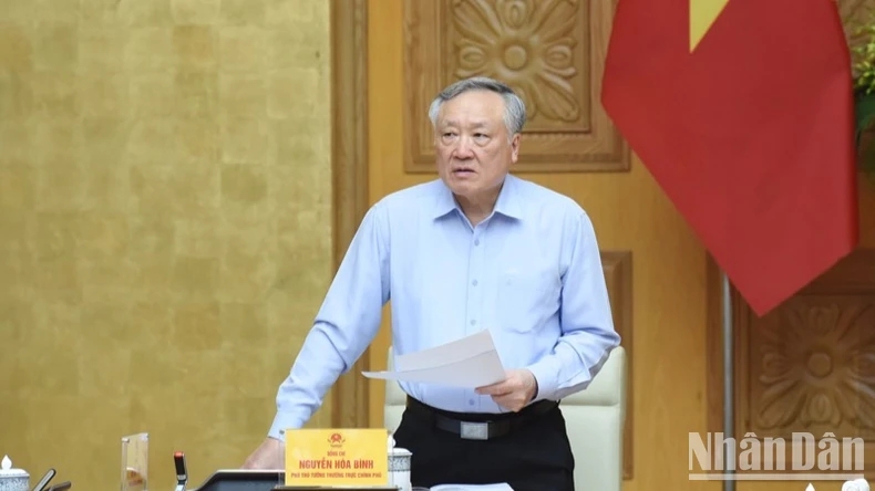 Phó Thủ tướng Thường trực Chính phủ Nguyễn Hòa Bình tham dự phiên họp. (Ảnh: TRẦN HẢI) |