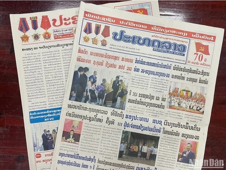 Trang nhất Báo Pathet Lao số ra ngày 22-4 cũng có bài viết “Tiếp tục phát huy mối quan hệ đoàn kết đặc biệt Lào-Việt Nam, Việt Nam-Lào”. Bài báo cho biết nhận lời mời của Tổng Bí thư, Chủ tịch nước Lào Thongloun Sisoulith, Chủ tịch nước Cộng hòa xã hội chủ nghĩa Việt Nam Lương Cường thăm cấp Nhà nước Lào từ ngày 24 đến 25-4-2025 nhằm tăng cường và phát huy mối quan hệ hữu nghị vĩ đại, đoàn kết đặc biệt và hợp tác toàn diện giữa hai nước.