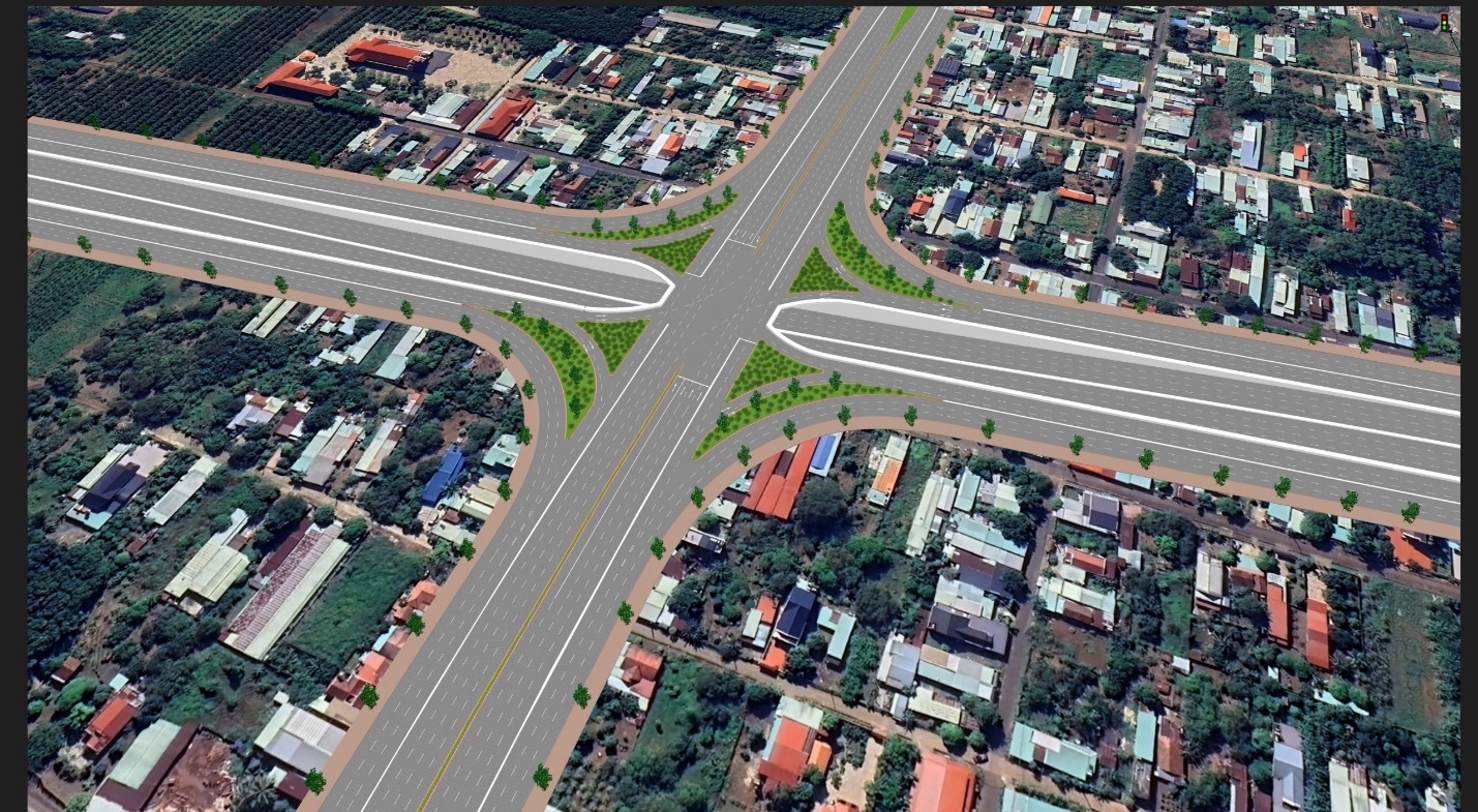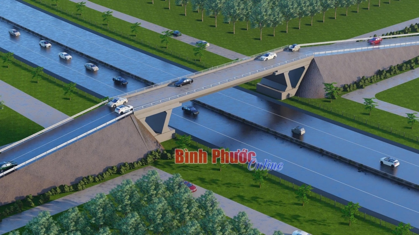 Hình mô phỏng đường gom và cầu vượt ngang đoạn qua tỉnh Bình Phước, Dự án đầu tư xây dựng đường cao tốc Bắc - Nam phía Tây đoạn Gia Nghĩa (Đắk Nông) - Chơn Thành (Bình Phước) - Ảnh: Tiến Dũng