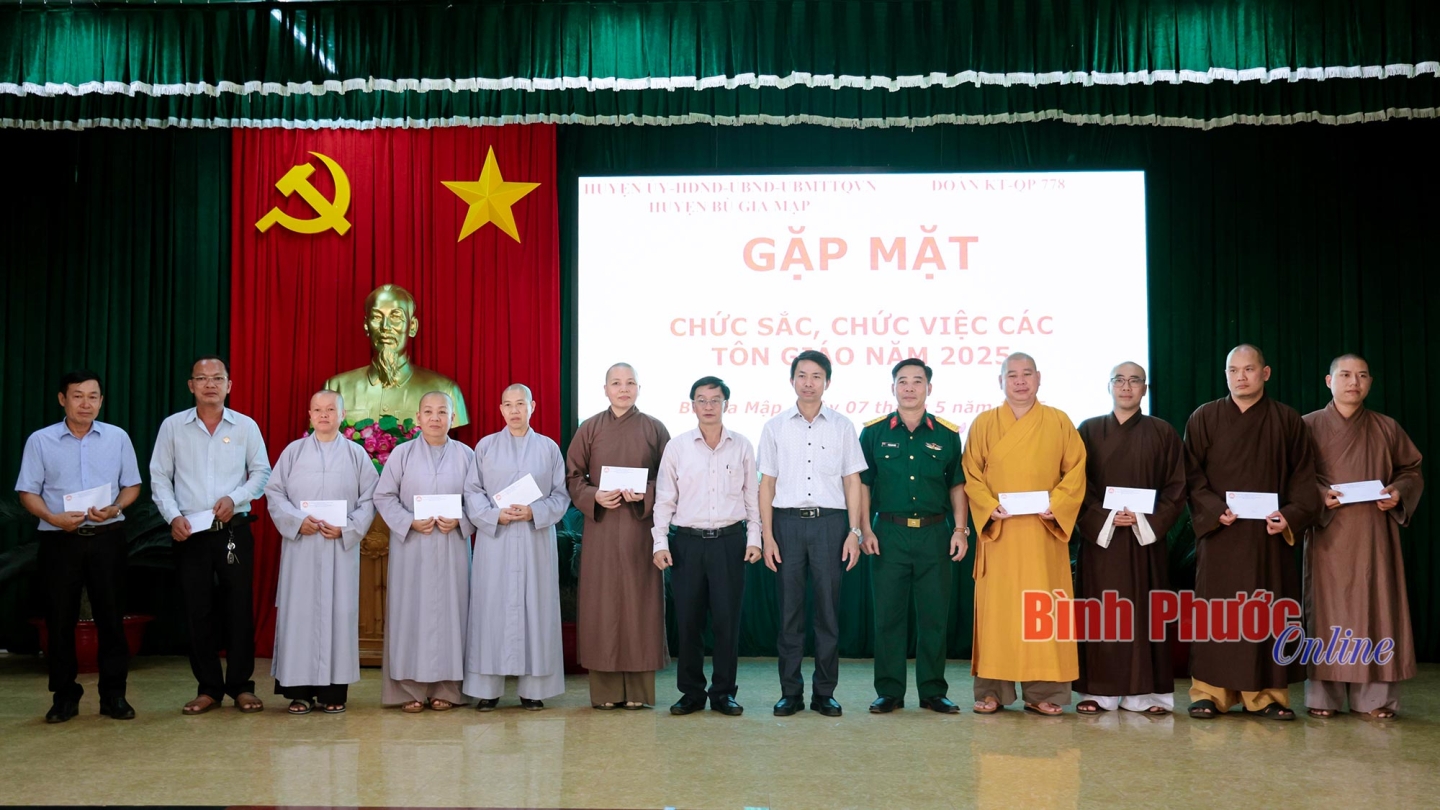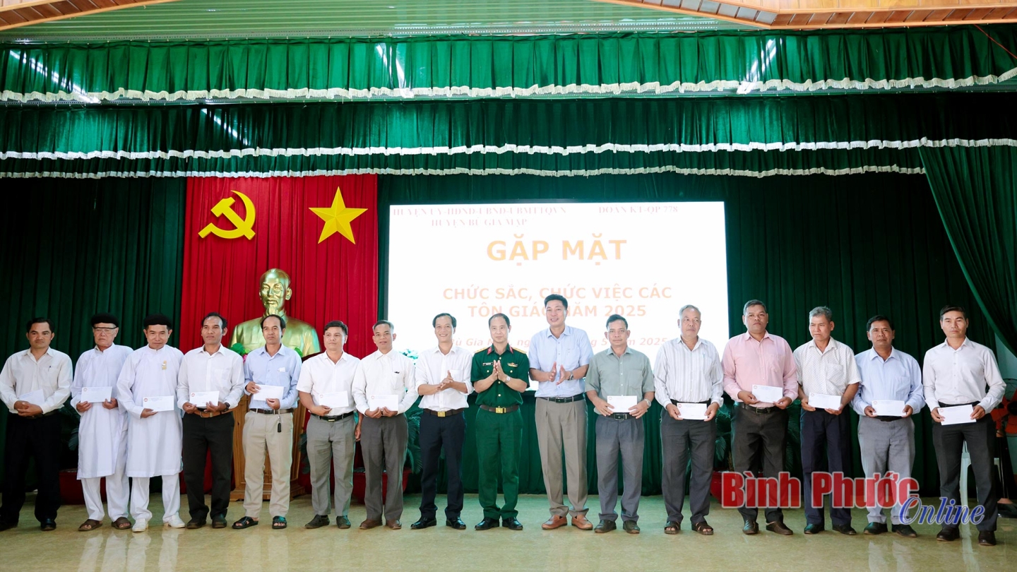 Dịp này, huyện Bù Gia Mập, Đoàn Kinh tế - Quốc phòng 778 cũng đã trao tặng quà đến các chức sắc, chức việc các tôn giáo tham dự chương trình.
