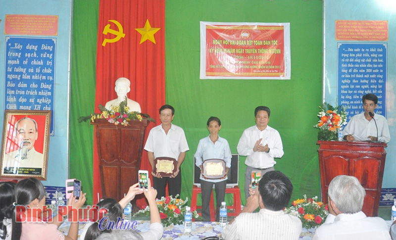 Đến dự và chung vui với người dân Sóc Rul, đại diện Ủy ban MTTQVN tỉnh đã tặng khu dân cư bức tranh chân dung Chủ tịch Hồ Chí Minh và tặng biểu trưng gia đình văn hóa cho 2 hộ tiêu biểu.
