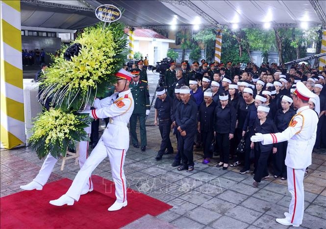 Gia tộc bên ngoại vào viếng nguyên Chủ tịch nước Trần Đức Lương. Ảnh: TTXVN