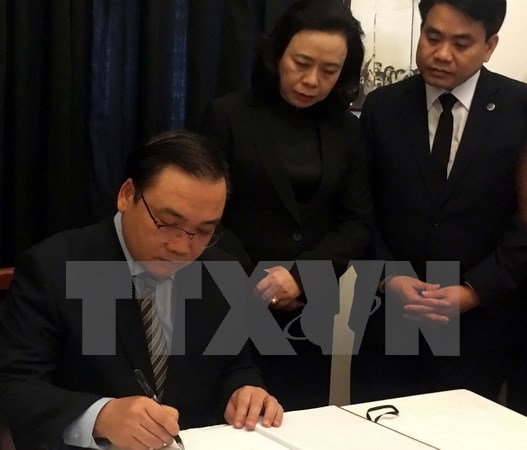 Thay mặt lãnh đạo Thành phố Hà Nội, đồng chí Hoàng Trung Hải đã ghi sổ tang với nội dung: "Vô cùng thương tiếc đồng chí Fidel Castro Ruz, nguyên Bí thư thứ nhất Ban Chấp hành Trung ương Đảng Cộng sản Cuba, nguyên Chủ tịch Hội đồng Nhà nước và Hội đồng Bộ trưởng nước Cộng hòa Cuba - lãnh tụ kiệt xuất của nhân dân Cuba anh em, nhà cách mạng lỗi lạc của các dân tộc Mỹ Latinh và phong trào đấu tranh vì độc lập, tự do và tiến bộ xã hội trên toàn thế giới.