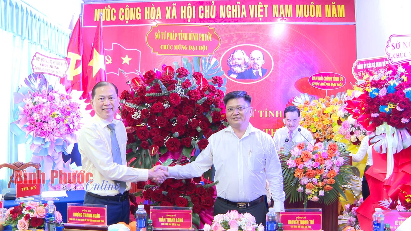 Ông Trần Thanh Long, Phó Giám đốc Sở Tư pháp tặng hoa chúc mừng đại hội