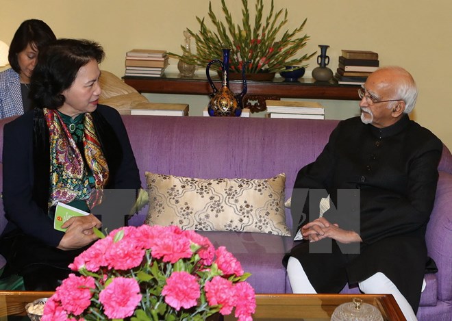 Chủ tịch Quốc hội Nguyễn Thị Kim Ngân gặp Phó Tổng thống kiêm Chủ tịch Thượng viện Ấn Độ Mohammad Hamid AnsariCảm ơn Phó Tổng thống kiêm Chủ tịch Thượng viện Ấn Độ đã dành cho đoàn sự đón tiếp trọng thị, thân tình, Chủ tịch Quốc hội Nguyễn Thị Kim Ngân khẳng định Việt Nam luôn coi Ấn Độ là người bạn truyền thống tin cậy và gắn bó, khởi nguồn từ sự gắn kết văn minh, văn hóa, tôn giáo, thương mại lâu đời. Quan hệ tốt đẹp này giữa hai nước giữa hai nước được Chủ tịch Hồ Chí Minh và Thủ tướng Jawaharlal Nehru tạo dựng nền móng, được các thế hệ lãnh đạo kế tiếp và nhân dân hai nước dày công vun đắp, nuôi dưỡng để đơm hoa kết trái như ngày nay.