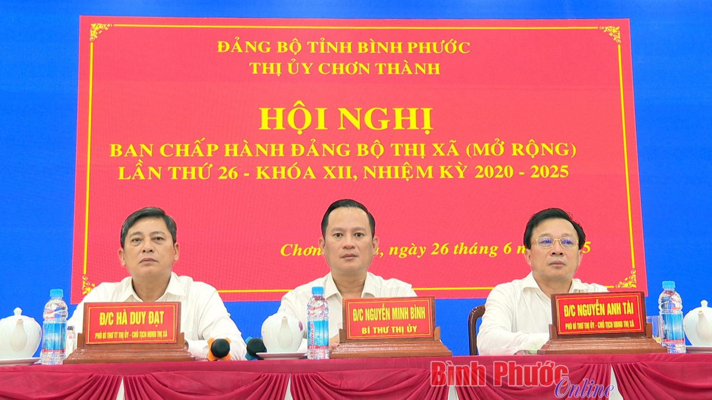 Tại hội nghị, Bí thư Thị ủy Chơn Thành Nguyễn Minh Bình đã chỉ đạo các đồng chí trong Ban Chấp hành, các cơ quan, đơn vị và xã, phường tiếp tục lãnh đạo, điều hành việc thực hiện các chỉ tiêu, nhiệm vụ đã đề ra. Đặc biệt là công tác chuẩn bị vận hành chính thức bộ máy cấp xã mới từ ngày 1-7-2025. Quan tâm hoàn thiện về nhân sự, cơ sở vật chất, trang thiết bị, đảm bảo chuyển giao tổ chức Đảng, sinh hoạt Đảng, cũng như số hóa, chỉnh lý hồ sơ và bàn giao theo quy định; phối hợp chuẩn bị thật chu đáo cho Lễ công bố các nghị quyết, quyết định của Tỉnh ủy, Thị ủy về sắp xếp tổ chức bộ máy và đơn vị hành chính cấp xã, dự kiến diễn ra vào ngày 30-6-2025.
