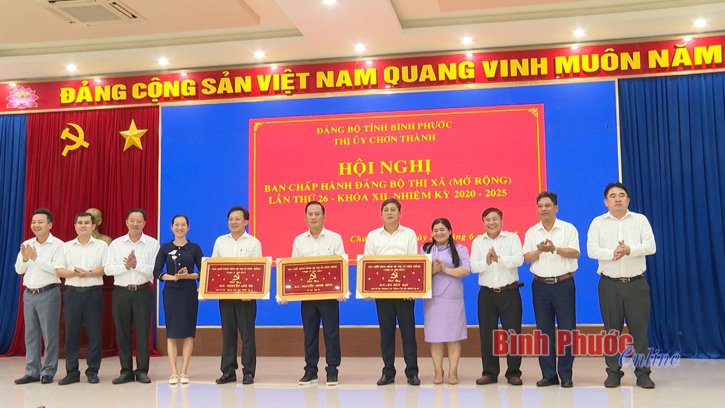 Dịp này, Thị ủy Chơn Thành cũng tổ chức tặng quà lưu niệm, tri ân các đồng chí trong Ban Thường vụ, Ban Chấp hành Đảng bộ thị xã khóa XII, nhiệm kỳ 2020-2025.