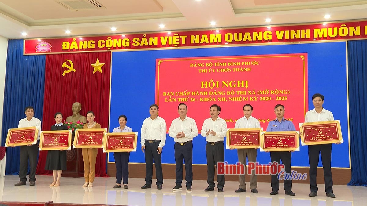 Thị ủy Chơn Thành, tặng quà lưu niệm, tri ân các đồng chí trong Ban Thường vụ, Ban Chấp hành Đảng bộ thị xã khóa XII, nhiệm kỳ 2020-2025
