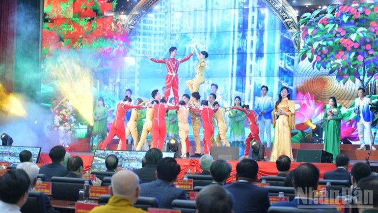 Một tiết mục văn nghệ được biểu diễn tại Lễ công bố. (Ảnh: THANH GIANG)
