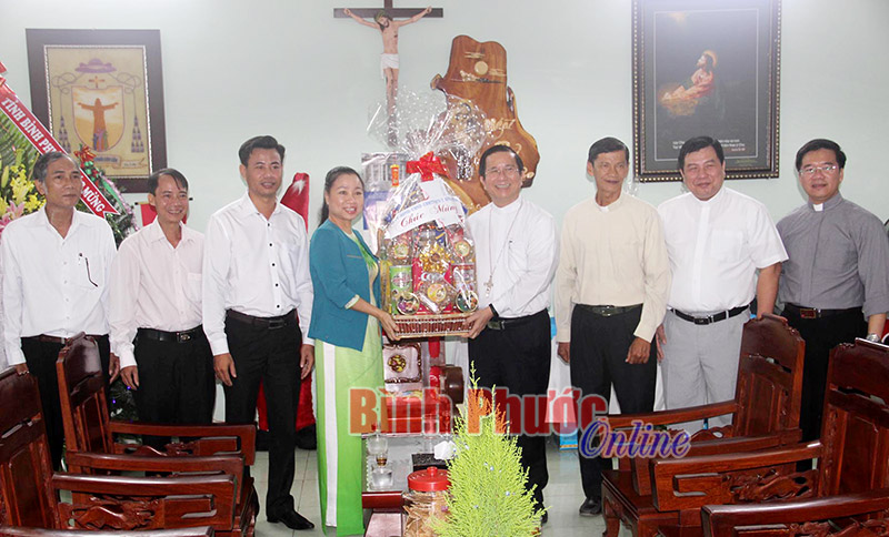 Dịp này, tại tỉnh Bình Phước, lãnh đạo tỉnh cũng đã tổ chức các đoàn đến thăm, chúc mừng lễ giáng sinh giáo xứ Phước Tín, giáo hạt Phước Long; giáo hạt Đồng Xoài; Ban đại diện Hội thánh Tin lành Việt Nam tỉnh; mục sư Mơ Lơng, nguyên Trưởng ban đại diện Tin lành tỉnh; giáo xứ Bù Đăng, Chi hội Đăng Blang (Bù Đăng), Chi hội Sơn Trung; giáo xứ Đắk Ân (Bù Gia Mập); giáo xứ Long Điền; giáo xứ Phước Bình; giáo xứ Minh Lập; giáo xứ Tân Khai; Ủy ban Đoàn kết Công giáo tỉnh; giáo hạt Bình Long; linh mục Quang Minh Tuấn, Chủ tịch Ủy ban Đoàn kết Công giáo tỉnh, Chánh xứ giáo xứ Bình Long; mục sư Điểu Huynh, Quản nhiệm Chi hội Bình Long; giáo xứ Phú Lương; Linh mục Lê Vinh Đởm, Chánh xứ giáo xứ Lộc Thiện, đại biểu HĐND tỉnh.