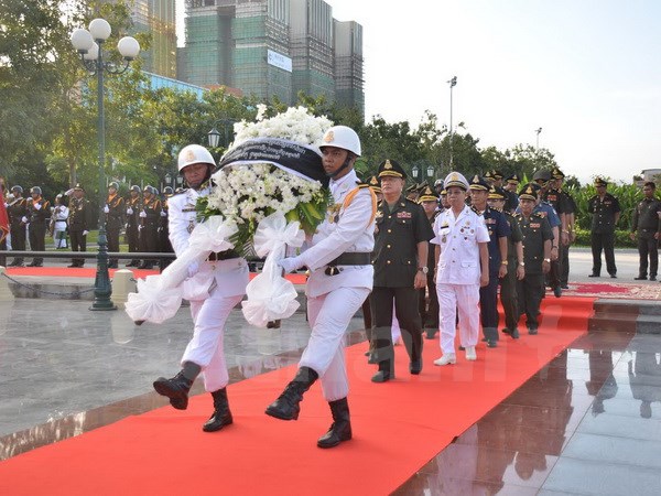 Đoàn đại biểu Bộ Quốc phòng Camuchia viếng các anh hùng liệt sỹ và chúc mừng ngày thành lập Quân đội Nhân dân Việt NamĐoàn tham gia lễ do Đại biện lâm thời Nguyễn Tác Toàn cùng Trưởng Tùy viên Quốc phòng Việt Nam, Đại tá Nguyễn Anh Dũng, dẫn đầu gồm cán bộ, nhân viên Đại sứ quán; các cơ quan xung quanh sứ quán, đại diện các doanh nghiệp Việt Nam đang đầu tư ở Campuchia và đại diện cộng đồng người Việt Nam đang sinh sống tại Campuchia.