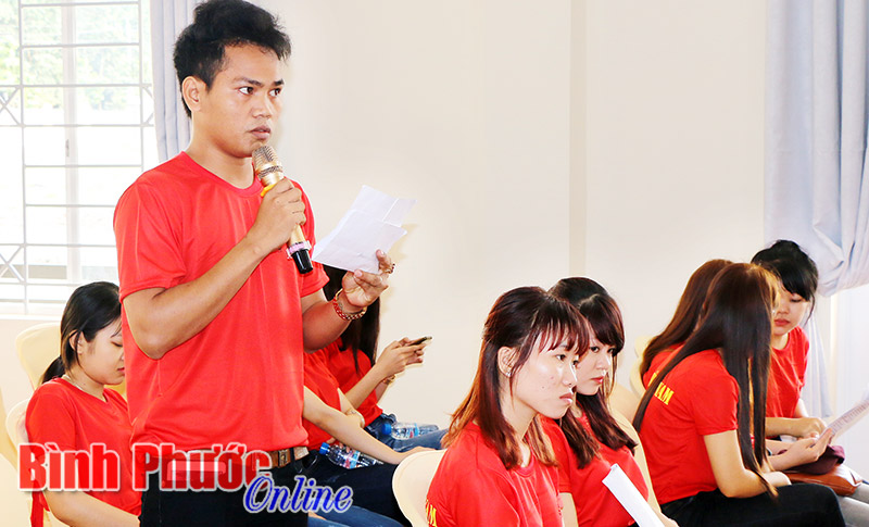 Cử tri Điểu Đức, công nhân trong KCN Bắc Đồng Phú đặt câu hỏi với đại biểu về việc giữ gìn an ninh trật tự và quản lý an toàn thực phẩm tại các KCN