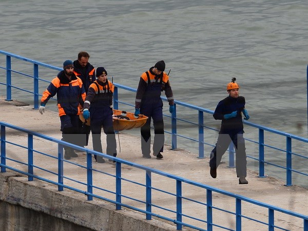 Các nhân viên cứu hộ đưa thi thể nạn nhân vào bờ. (Nguồn: THX/TTXVN)Trước đó, Tổng thống Nga Vladimir Putin tuyên bố ngày 26-12, Nga tổ chức quốc tang các nạn nhân vụ tai nạn máy bay TU-154, bị rơi tại vùng Biển Đen sáng 25-12.
