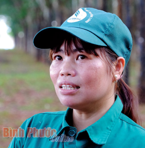 8. Công nhân PHẠM THỊ THU, SN1981, dân tộc Kinh, công nhân cạo mủ tổ 2, Công đoàn Nông trường Bình Minh, Công ty TNHH MTV cao su Bình Long.