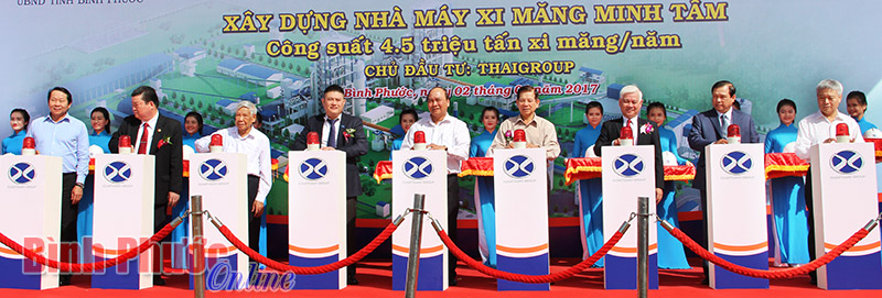 Thủ tướng Chính phủ Nguyễn Xuân Phúc đến dự và ấn nút khởi công xây dựng Nhà máy xi măng Minh Tâm. Nhà máy được xây dựng trên diện tích 400 ha, công suất hoạt động 4,5 triệu tấn/năm, tổng vốn đầu tư 12.000 tỷ đồng; dự kiến thời gian thi công 24 tháng. Đây là một trong những sự kiện trong chuỗi hoạt động chào mừng kỷ niệm 20 năm tái lập tỉnh (1-1-1997 - 1-1-2017), đồng thời nằm trong quy hoạch phát triển ngành công nghiệp xi măng, định hướng đến năm 2030 của Chính phủ. Dự án hứa hẹn sẽ tạo việc làm cho hàng ngàn lao động và tăng thu ngân sách cho tỉnh. Tại lễ khởi công, đại diện Tập đoàn Xuân Thành đã hứa sẽ cùng tập thể cán bộ, nhân viên trong tập đoàn và nhân dân tỉnh Bình Phước nỗ lực hết sức trong việc tập trung mọi nguồn lực để nhanh chóng xây dựng dự án, hoàn thành đúng tiến độ, đảm bảo chất lượng, sớm đưa vào khai thác.