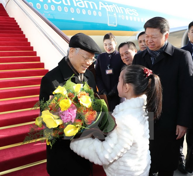 Thiếu nhi Trung Quốc tặng hoa chào đón Tổng Bí thư Nguyễn Phú Trọng tại Sân bay Quốc tế Bắc KinhVề quan hệ Việt-Trung hiện nay, Đại sứ cho biết nhìn lại năm vừa qua, quan hệ giữa hai nước và hai Đảng có bước phát triển hết sức mạnh mẽ. Ngay sau khi Việt Nam tổ chức thành công Đại hội Đảng toàn quốc lần thứ XII, Tổng Bí thư, Chủ tịch nước Trung Quốc Tập Cận Bình đã gửi lời chúc mừng và bày tỏ rõ ràng mong muốn củng cố tăng cường hơn nữa quan hệ giữa hai Đảng, hai nước.