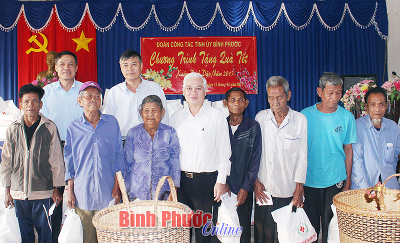 * Cùng ngày, đoàn đã đến thăm, chúc tết và tặng quà đồng bào dân tộc thiểu số (DTTS), người nghèo 2 xã Lộc Khánh, Lộc Điền, huyện Lộc Ninh. Mỗi xã được tặng 150 phần quà, trị giá 400 ngàn đồng/phần. Quà do Hội Chữ thập đỏ tỉnh vận động Công ty TNHH xây dựng Thanh Minh (Đồng Xoài) hỗ trợ 200 phần, Công ty TNHH MTV cấp thoát nước Bình Phước hỗ trợ 100 phần.