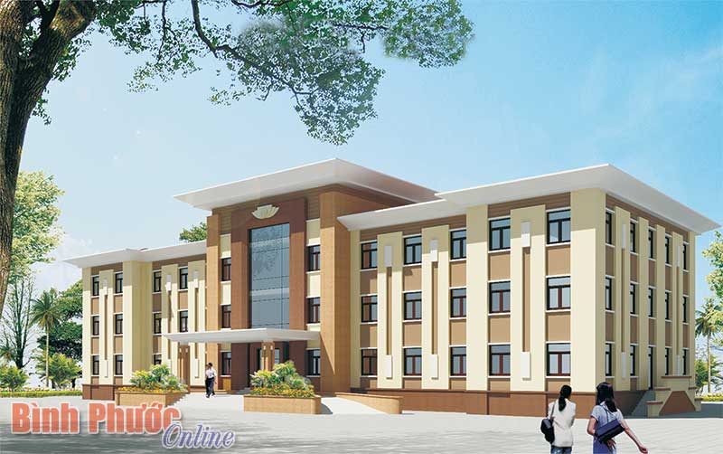 Mô hình tòa nhà Thị ủy Phước Long đang được xây dựng tại trung tâm hành chính và đô thị mới thị xã Phước Long