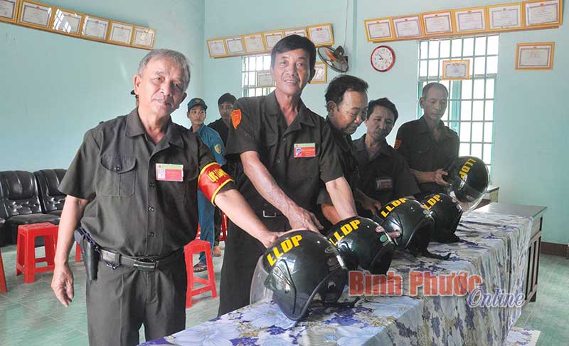 Đội dân phòng ấp Sóc Rul chuẩn bị lên đường tuần tra