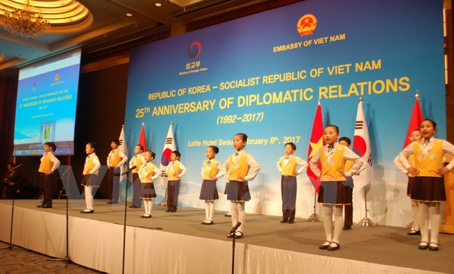 Tiết mục văn nghệ của con em Việt kiều tại Hàn QuốcĐiểm lại những mốc quan trọng trong mối quan hệ song phương trong 25 năm qua và nhấn mạnh rằng hợp tác kinh tế và giao lưu nhân dân chỉ là một phần trong mối quan hệ đó, Thứ trưởng Lee Jeong-gyu cho rằng đây là kết quả của những nỗ lực không ngừng của chính phủ và nhân dân hai nước và cho thấy tương lai của hai nước có sự liên kết chặt chẽ với nhau. Theo ông, kỷ niệm 25 ngày thiết lập quan hệ ngoại giao song phương cũng là dịp để hai bên tìm kiếm thêm những cách nhằm tăng cường và phát triển mối quan hệ này trong thời gian tới, đánh dấu sự khởi đầu của một chương mới trong mối quan hệ giữa hai nước.
