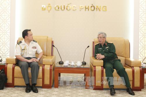 Thượng tướng Nguyễn Chí Vịnh, Thứ trưởng Bộ Quốc phòng tiếp Đại tá Keitaro Shido, Tùy viên Quốc phòng Nhật Bản tại Việt Nam.