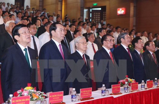 Bí thư Tỉnh ủy Nguyễn Văn Hùng nhấn mạnh tự hào về người con ưu tú của quê hương, học tập tấm gương Tổng Bí thư Lê Duẩn và các đồng chí lãnh đạo tiền bối, Đảng bộ và nhân dân Quảng Trị nguyện đoàn kết, phấn đấu thực hiện thắng lợi Nghị quyết Đại hội đại biểu toàn quốc lần thứ XII của Đảng, Nghị quyết Đại hội Đảng bộ tỉnh lần thứ XVI với những nhiệm vụ trọng tâm về kinh tế-xã hội và xây dựng Đảng, phấn đấu đưa tỉnh Quảng Trị ngày càng phát triển, đời sống vật chất, tinh thần của nhân dân ngày càng được nâng cao.