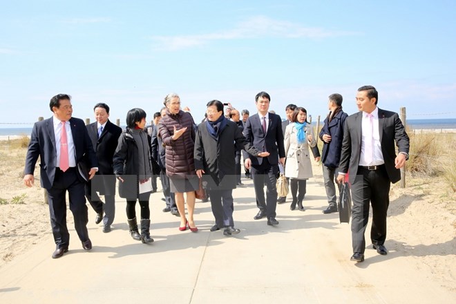 Phó Thủ tướng Trịnh Đình Dũng đến thăm công trình Sand Engine (Động cơ cát), một thành tựu nổi bật về cải tạo thiên nhiên của Hà Lan