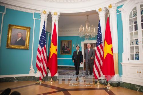 Theo tại Washington, trong khuôn khổ chuyến thăm chính thức Hoa Kỳ, ngày 21-4-2017, Phó Thủ tướng, Bộ trưởng Bộ Ngoại giao Phạm Bình Minh đã có cuộc gặp với Quyền Đại diện Thương mại Hoa Kỳ Stephen Vaught, tiếp nhóm các Trợ lý Nghị sĩ của hai Đảng Cộng hòa và Dân chủ, Ban lãnh đạo Trung tâm Nghiên cứu Chiến lược và Quốc tế (CSIS) và Quỹ Heritage Foundation, Ban lãnh đạo Hội đồng Thương mại Hoa Kỳ và đại diện các doanh nghiệp Hoa Kỳ đang kinh doanh ở Việt Nam.