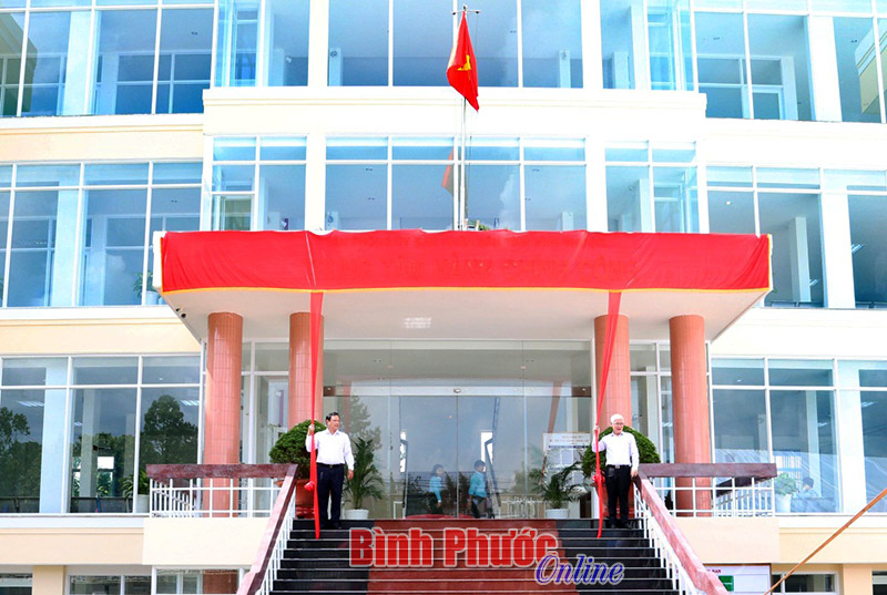 Các đồng chí: Nguyễn Văn Lợi, Ủy viên Trung ương Đảng, Bí thư Tỉnh ủy; Nguyễn Văn Trăm, Phó bí thư Tỉnh ủy, Chủ tịch UBND tỉnh thực hiện nghi thức trương biển hoạt động của Trung tâm Hành chính công - Ảnh: Sỹ Hòa