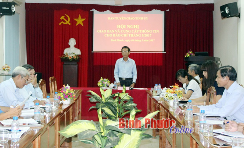 Định hướng tuyên truyền trong tháng 5-2017, Phó trưởng Ban Tuyên giáo Tỉnh ủy yêu cầu: Các cơ quan báo chí cần: Định hướng tiếp cận, xử lý và chia sẻ thông tin trên mạng xã hội cho cán bộ, đảng viên, đoàn viên, hội viên các đoàn thể chính trị - xã hội; Tuyên truyền về hội nghị khách hàng quốc tế ngành điều Bình Phước 2017; Thực trạng và giải pháp đối với công tác bảo vệ môi trường; Tuyên truyền tăng cường sự lãnh đạo của Đảng đối với cuộc vận động “Toàn dân đoàn kết xây dựng nông thôn mới, đô thị văn minh”; Tập trung tuyên truyền làm rõ những nỗ lực, quyết tâm trong lãnh đạo, chỉ đạo, điều hành của cấp ủy, chính quyền các cấp, nhất là sự lãnh đạo của Tỉnh ủy, UBND tỉnh trong triển khai phát triển kinh tế - xã hội...