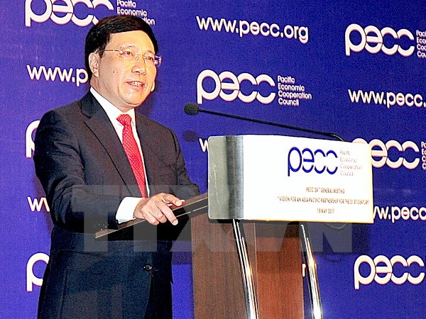 Phát biểu khai mạc, chúc mừng những thành quả xuất sắc và cống hiến của Hội đồng hợp tác kinh tế Thái Bình Dương cũng như tất cả thành viên về sự tiên phong, những đóng góp nổi bật của Hội đồng đối với hợp tác, thịnh vượng của khu vực trong gần 4 thập kỷ qua, Phó Thủ tướng Phạm Bình Minh nhấn mạnh, Hội đồng hợp tác kinh tế Thái Bình Dương đã khẳng định vai trò là một thể chế đặc biệt, nắm bắt được tâm huyết, trí tuệ của các các doanh nghiệp, chính phủ, giới học giả để hình thành các ý tưởng nhằm xử lý những thách thức quan trọng nhất mà châu Á-Thái Bình Dương đang phải đối mặt.