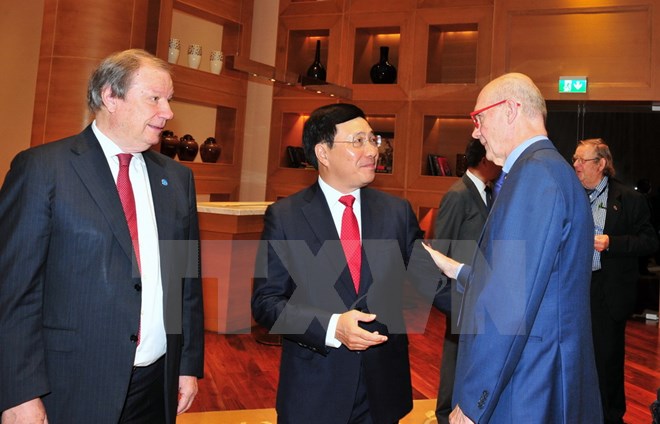 Phó Thủ tướng, Bộ trưởng Bộ Ngoại giao Phạm Bình Minh, Chủ tịch Ủy ban Quốc gia APEC 2017 dự và phát biểu.