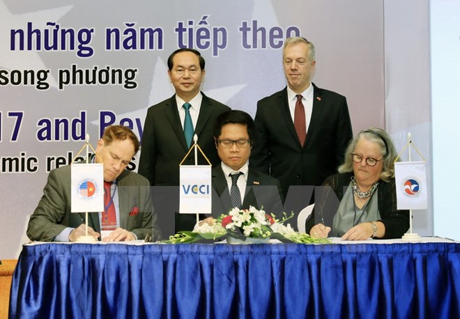 Chủ tịch nước Trần Đại Quang chứng kiến Lễ ký Biên bản ghi nhớ giữa Phòng Thương mại và Công nghiệp Việt Nam với Hiệp hội Thương mại Hoa Kỳ