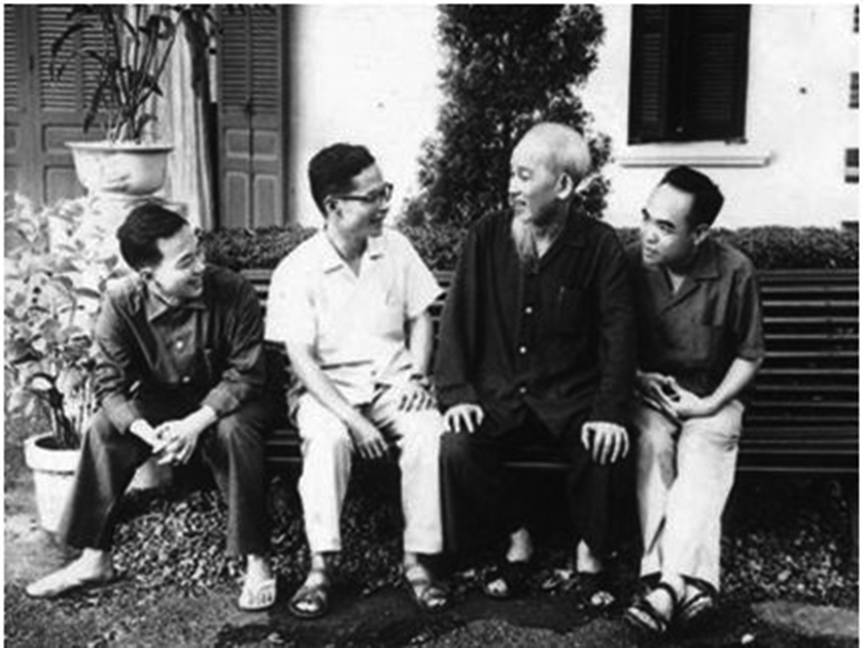Bác Hồ nói chuyện với các nhà văn, nhà thơ Tố Hữu, Phan Tứ, Trần Đình Vân - Ảnh: Tư liệu