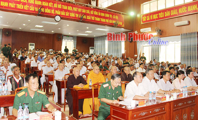 Tại hội nghị, 260 vị chức sắc, già làng, người có uy tín trong vùng đồng bào DTTS trên địa bàn tỉnh đã được Chính ủy Bộ tư lệnh Quân khu 7 Phạm Văn Dỹ thông tin về một số nội dung như: Lịch sử đất nước Việt Nam qua các thời kỳ kháng chiến. Tình hình biển Đông và sự kiên quyết đấu tranh bảo vệ chủ quyền biển đảo của quân và nhân dân ta. Các vấn đề về tôn giáo ở một số nước trong khu vực và công tác tôn giáo trên địa bàn tỉnh Bình Phước…