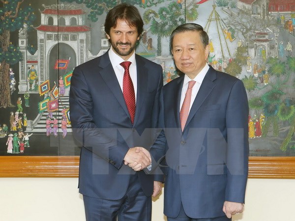 Bộ trưởng Tô Lâm nhiệt liệt chào mừng ngài Phó Thủ tướng kiêm Bộ trưởng và Đoàn đại biểu cấp cao Bộ Nội vụ Cộng hòa Slovakia sang thăm chính thức Việt Nam; đồng thời chân thành cảm ơn ngài Phó Thủ tướng và các bạn đồng nghiệp Slovakia đã dành cho các thành viên Đoàn đại biểu cấp cao Bộ Công an Việt Nam sự đón tiếp trọng thị, nồng hậu nhân dịp Đoàn sang thăm, làm việc tại Slovakia từ ngày 4 đến 6-3.