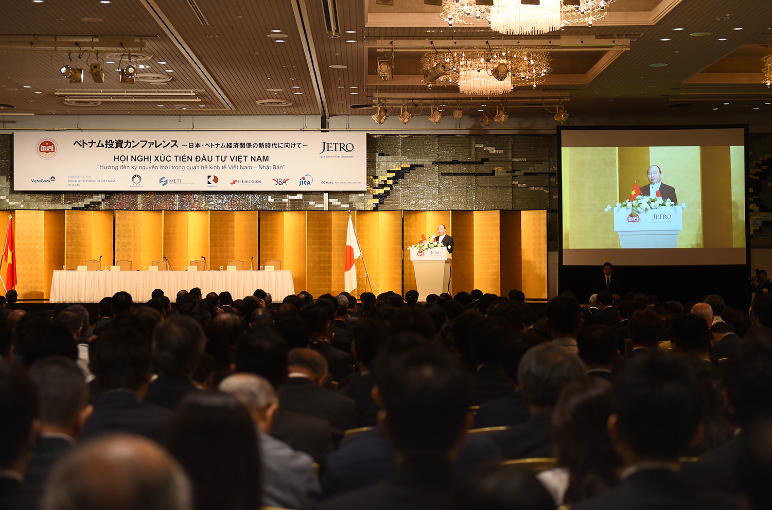 Phát biểu tại Hội nghị, Thủ tướng Nguyễn Xuân Phúc dẫn báo cáo vừa được JETRO công bố gần đây cho biết môi trường đầu tư ở Việt Nam đã nhận được đánh giá tích cực của cộng đồng DN Nhật Bản như 90% DN Nhật Bản tin rằng mở rộng kinh doanh tại Việt Nam giúp họ tăng doanh thu. Cuộc khảo sát của JETRO cũng nhấn mạnh rằng, xếp hạng của Việt Nam về rủi ro kinh doanh đang giảm, cho thấy điều kiện đầu tư cải thiện.