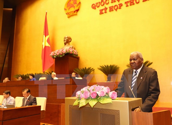Chủ tịch Quốc hội Cuba Esteban Lazo Hernández đến dự và phát biểu tại Phiên họp toàn thể, Kỳ họp thứ ba, Quốc hội khóa XIV. (Ảnh: Trọng Đức/TTXVN)