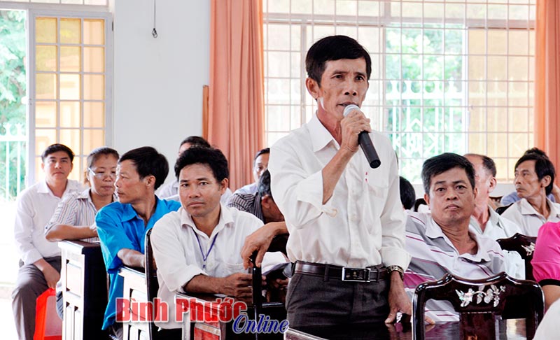 Cử tri xã Thanh Phú (Bình Long) kiến nghị tại buổi tiếp xúc cử tri ngày 28-6-2017 - Ảnh: Tuyết Ly