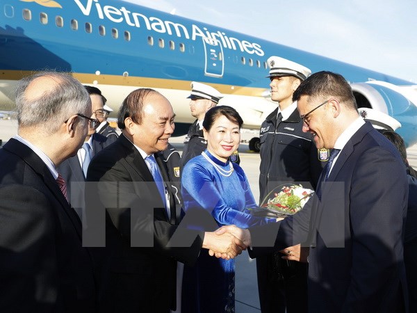 Lễ đón Thủ tướng Nguyễn Xuân Phúc cùng Phu nhân và Đoàn được tổ chức trang trọng tại Sân bay quốc tế Frankfurt.