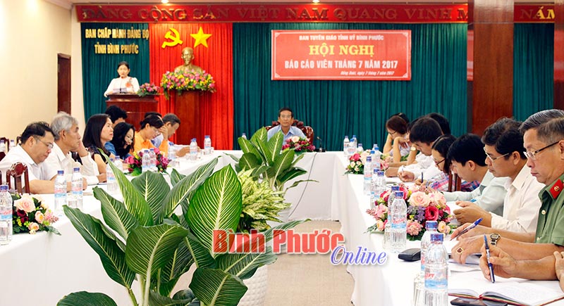 Định hướng tuyên truyền thời gian tới, Phó ban Tuyên giáo Tỉnh ủy Nguyễn Công Sởi nhấn mạnh các báo cáo viên cần đẩy mạnh tuyên truyền làm nổi bật những thành tựu của tình hình kinh tế - xã hội 6 tháng đầu năm, tinh thần chủ động và sự quyết liệt của các ngành để tháo gỡ những khó khăn trong hoạt động sản xuất kinh doanh; tuyên truyền tính hiệu quả, lợi ích khi tham gia các loại bảo hiểm; tuyên truyền những đổi mới trong hoạt động chất vấn kỳ họp thứ 3, Quốc hội khóa XIV; tiếp tục tuyên truyền Nghị quyết Trung ương 5 khóa XII, đặc biệt là 3 nghị quyết chuyên đề về kinh tế; tiếp tục có những bài viết phản bác lại các thông tin tuyên truyền sai lệch về Đảng và Nhà nước.