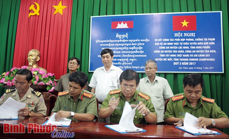BP - Ngày 12-7, Công an huyện Lộc Ninh tổ chức hội nghị giao ban về phòng, chống tội phạm, bảo vệ an ninh trật tự khu vực biên giới quý 2/2017 giữa Công an huyện Lộc Ninh (Bình Phước) với công an 2 huyện Tân Châu, Tân Biên (Tây Ninh) và Chi Cảnh sát huyện Mi Mốt, tỉnh Tbong Khmum (Campuchia). Dự hội nghị giao ban có đại diện lãnh đạo chính quyền 3 huyện Lộc Ninh, Tân Châu, Mi Mốt.