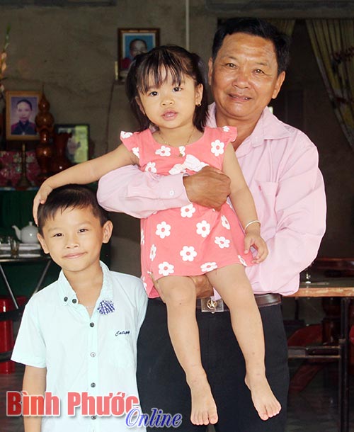 Cựu chiến binh, thương binh Nguyễn Thành Sơn vui vẻ với các cháu nội