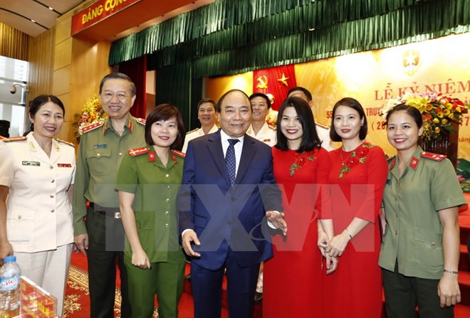 Vui mừng đến dự Lễ kỷ niệm, thay mặt Lãnh đạo Đảng, Nhà nước, Thủ tướng Chính phủ Nguyễn Xuân Phúc nhiệt liệt chúc mừng, biểu dương sự nỗ lực và những chiến công, thành tích xuất sắc của các thế hệ tướng lĩnh, sỹ quan, cán bộ, chiến sỹ công nhân viên, người lao động trong lực lượng Cảnh sát nhân dân trong đấu tranh phòng chống tội phạm, giữ gìn trật tự an toàn xã hội vì sự bình yên của đất nước và vì cuộc sống hạnh phúc của nhân dân.