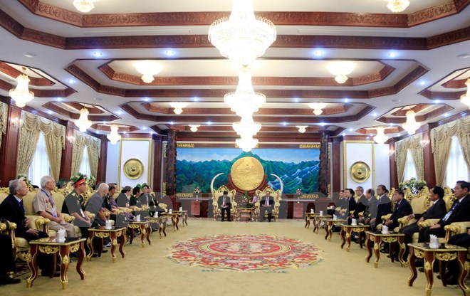 Tổng Bí thư, Chủ tịch nước Lào cho biết trong đoàn có nhiều các đồng chí đã từng tham gia chiến đấu, cùng đồng cam cộng khổ với nhân dân Lào trong những năm tháng chiến tranh chống kẻ thù xâm lược, cũng có nhiều thành viên thuộc các thế hệ đã sang giúp Lào xây dựng và bảo vệ đất nước sau khi kết thúc chiến tranh và nước CHDCND Lào ra đời.