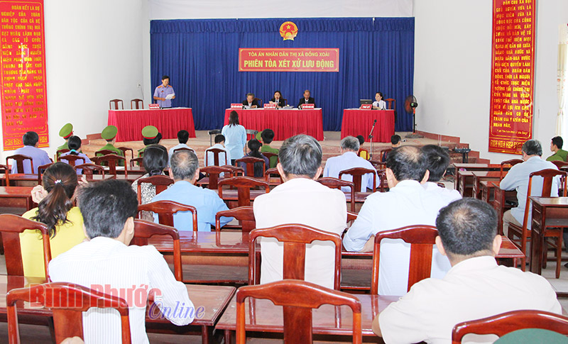 Một phiên tòa xét xử lưu động ở thị xã Đồng Xoài - Ảnh: B.L