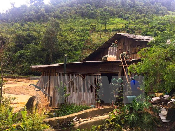 Cán bộ, chiến sỹ Biên phòng Hà Giang giúp nhân dân khắc phục sạt lở do mưa lũ. (Nguồn: TTXVN)
